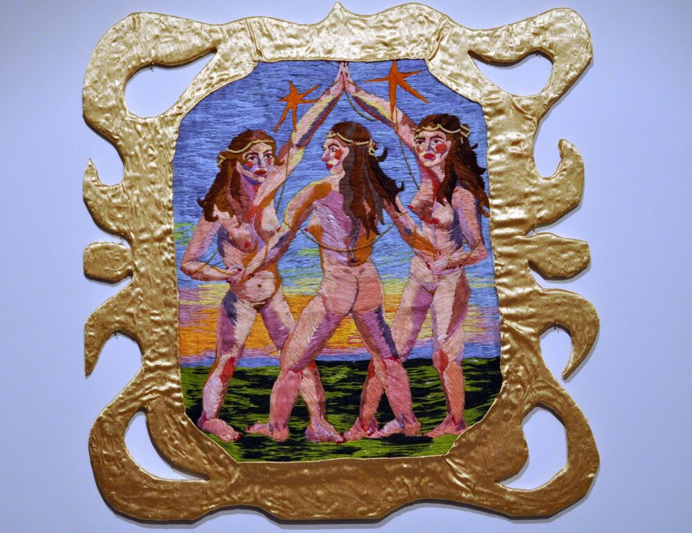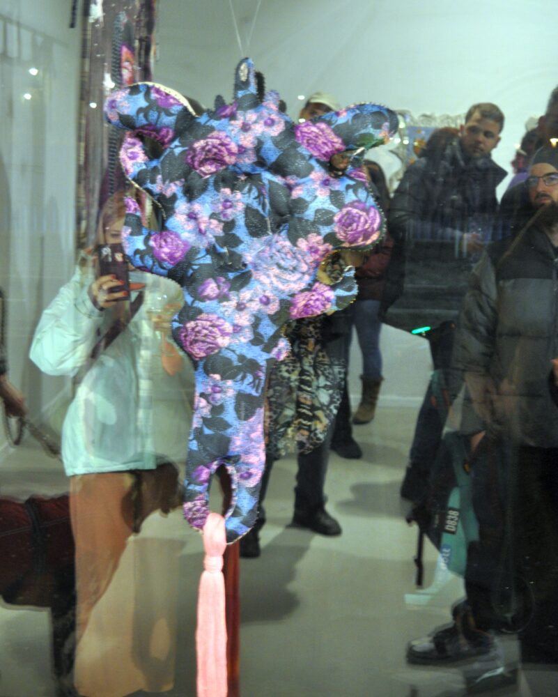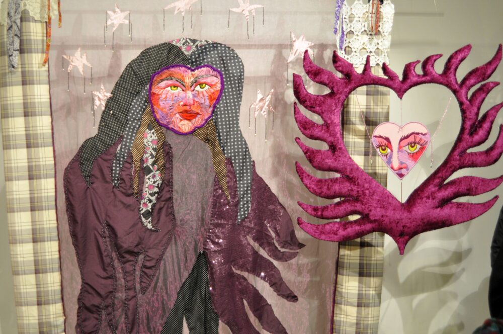 Dankó Boglárka Heresy in the small hours kiállításán hímzések, gyöngyök, flitterek és díszítőelemek kollázsszerűen töltik meg a kompozíciós felületeket, telített és érzékenyen tapintható anyagfelszíneket hozva létre. Figurái a Mother of the Night című nagyméretű textilinstalláció óvó tekintete alól lépnek elő. Az éjszaka leple alatt érkeznek, amikor a testük átléphetik saját határaikat, az identitásuk fellazulhat, és teret nyer a transzformáció egy időbeli és szimbolikus szférában, ami a nőiséghez, a rejtőzködéshez, a gondoskodáshoz és az ellenálláshoz kapcsolódik.