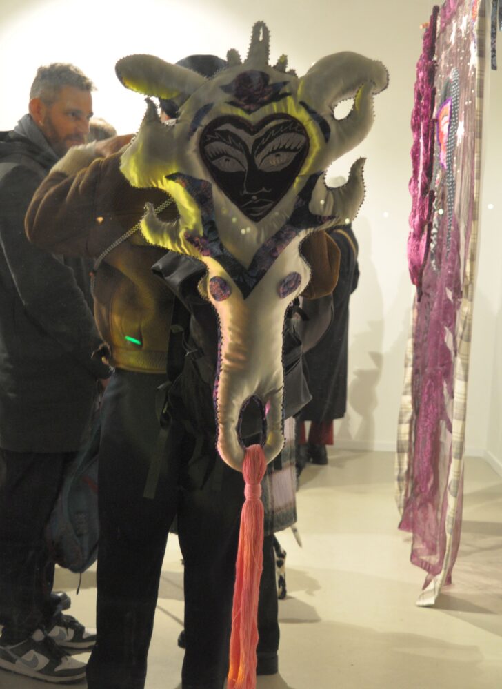 Dankó Boglárka Heresy in the small hours kiállításán hímzések, gyöngyök, flitterek és díszítőelemek kollázsszerűen töltik meg a kompozíciós felületeket, telített és érzékenyen tapintható anyagfelszíneket hozva létre. Figurái a Mother of the Night című nagyméretű textilinstalláció óvó tekintete alól lépnek elő. Az éjszaka leple alatt érkeznek, amikor a testük átléphetik saját határaikat, az identitásuk fellazulhat, és teret nyer a transzformáció egy időbeli és szimbolikus szférában, ami a nőiséghez, a rejtőzködéshez, a gondoskodáshoz és az ellenálláshoz kapcsolódik.