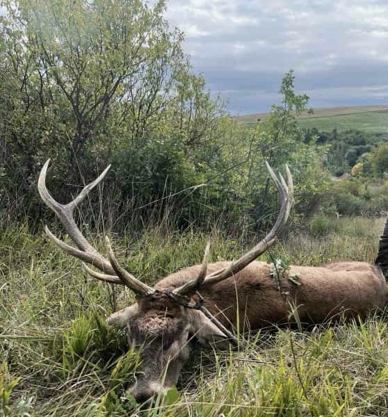 Két hét múlva ettől a vadászterülettől nem messze, egyetemi csoporttalálkozóm volt. Mivel úgy is arra a környékre készültünk a feleségemmel megbeszéltük, hogy egy nappal korábban megyünk, még egyszer megpróbálom. Az egész világ elől eltitkoltam, hogy vadászni megyek. Semmivel sem volt több vagy jobb esély, mint két héttel korábban. Reggel villámgyors lehetőség adódott, állóhelyzetből, kézből, támaszték nélkül igen jó, öreg bikát lőttem mindannyiunk örömére.